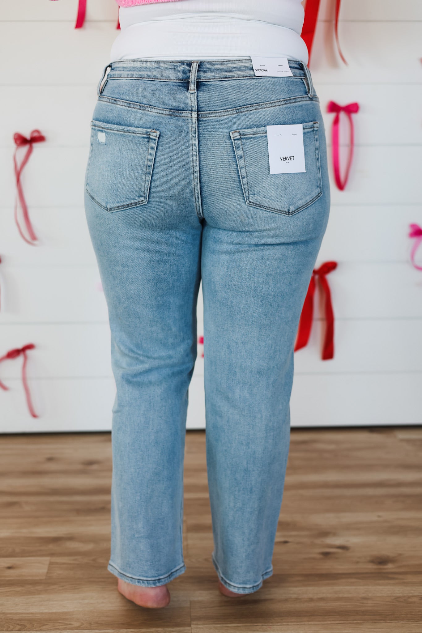 Elevate your denim game with these stunning high-rise straight leg jeans that blend timeless style with modern sparkle. Crafted by Vervet, these jeans feature lustrous pearl and rhinestone embellishments that catch the light beautifully, making them perfect for nights out or when you want to add a touch of glamour to your everyday look. The classic straight leg silhouette flatters all body types while the high-rise waist offers comfortable, confident coverage. Whether you're dressing them up with heels or keeping it casual with sneakers, these jeans are your new go-to for turning heads and feeling fabulous.