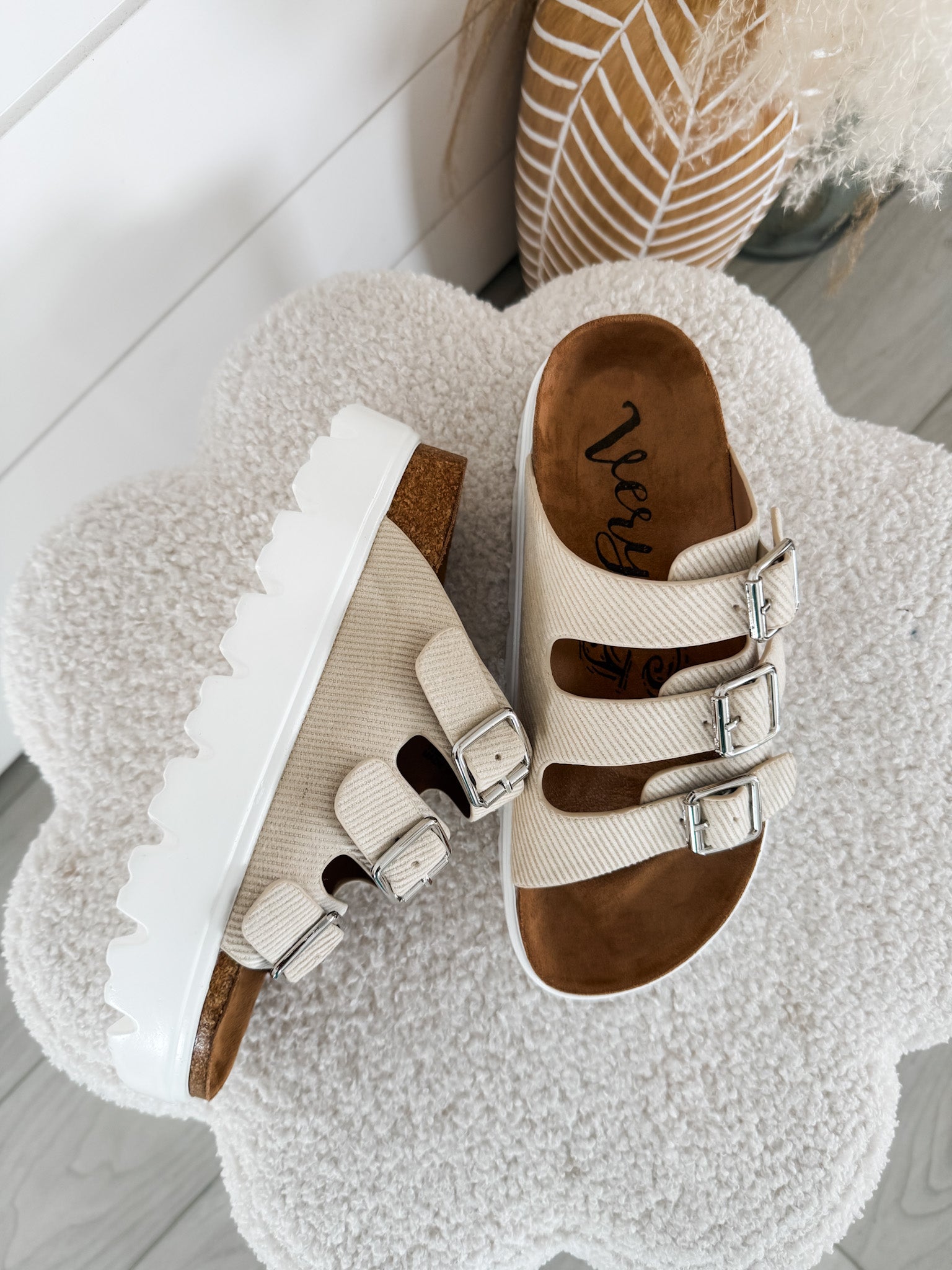 Step into effortless style with the Very G Plaza Sandal—a playful take on the classic platform shoe. Featuring a cozy corduroy upper that begs to be touched, this sandal keeps things fun with three adjustable straps that let you customize the fit to perfection. Whether you're running errands or heading out for a casual day, the sturdy platform sole keeps you comfortable and on-trend. Mix, match, and make it yours!