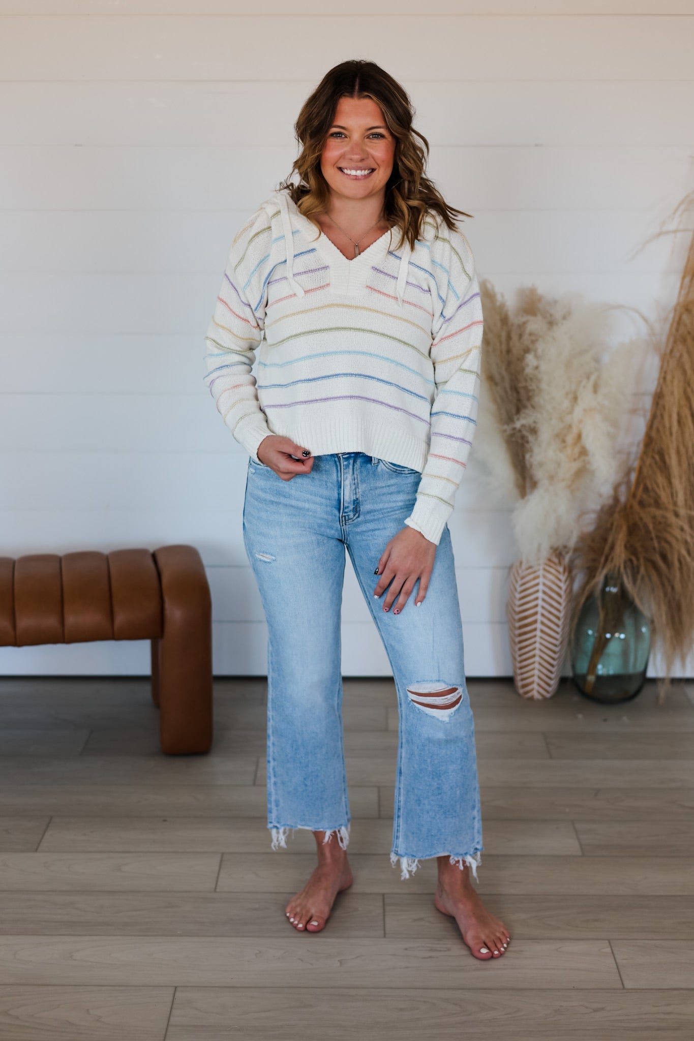 Waited So Long Top Layer up with this playful drawstring hoodie that doubles as a cozy vneck sweater. Perfect for those "I've been waiting forever for the perfect layering piece" moments, this versatile top brings comfort and style together. The adjustable drawstring lets you customize your fit, while the vneck adds a touch of sophistication to your casual wardrobe. Whether you're lounging at home or heading out for a relaxed day, this piece is your new go-to for effortless cool.