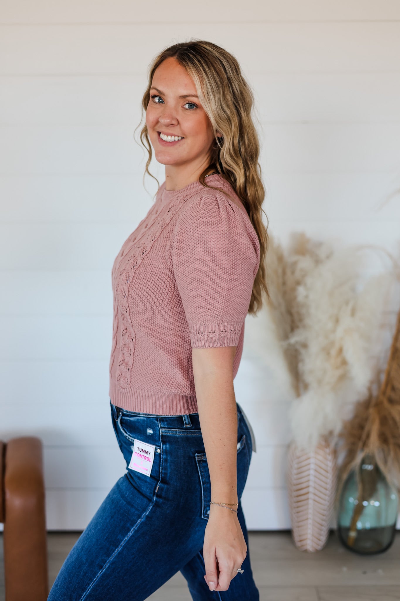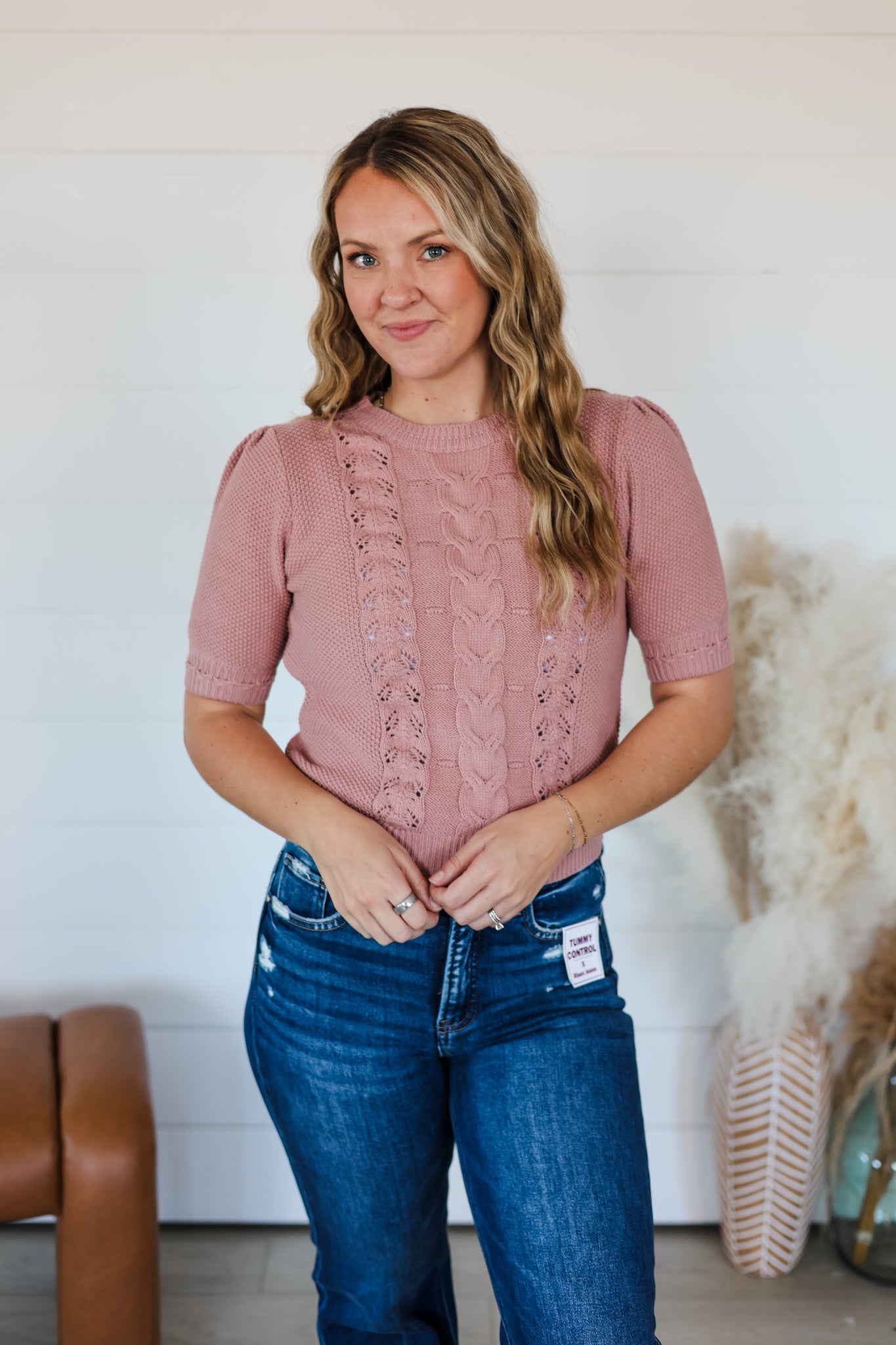 Chunky Puff Short Sleeve Cable Knit Sweater Cozy meets cute in this statement-making sweater! Featuring a bold cable knit pattern and puffy short sleeves, it's the perfect piece to layer or wear solo. The chunky knit texture adds serious dimension and visual interest, while the relaxed fit keeps things comfortable and effortless. Whether you're heading to brunch or a casual hangout, this sweater brings that "I woke up like this" vibe with zero effort required. A wardrobe essential that proves comfort and style aren't mutually exclusive.