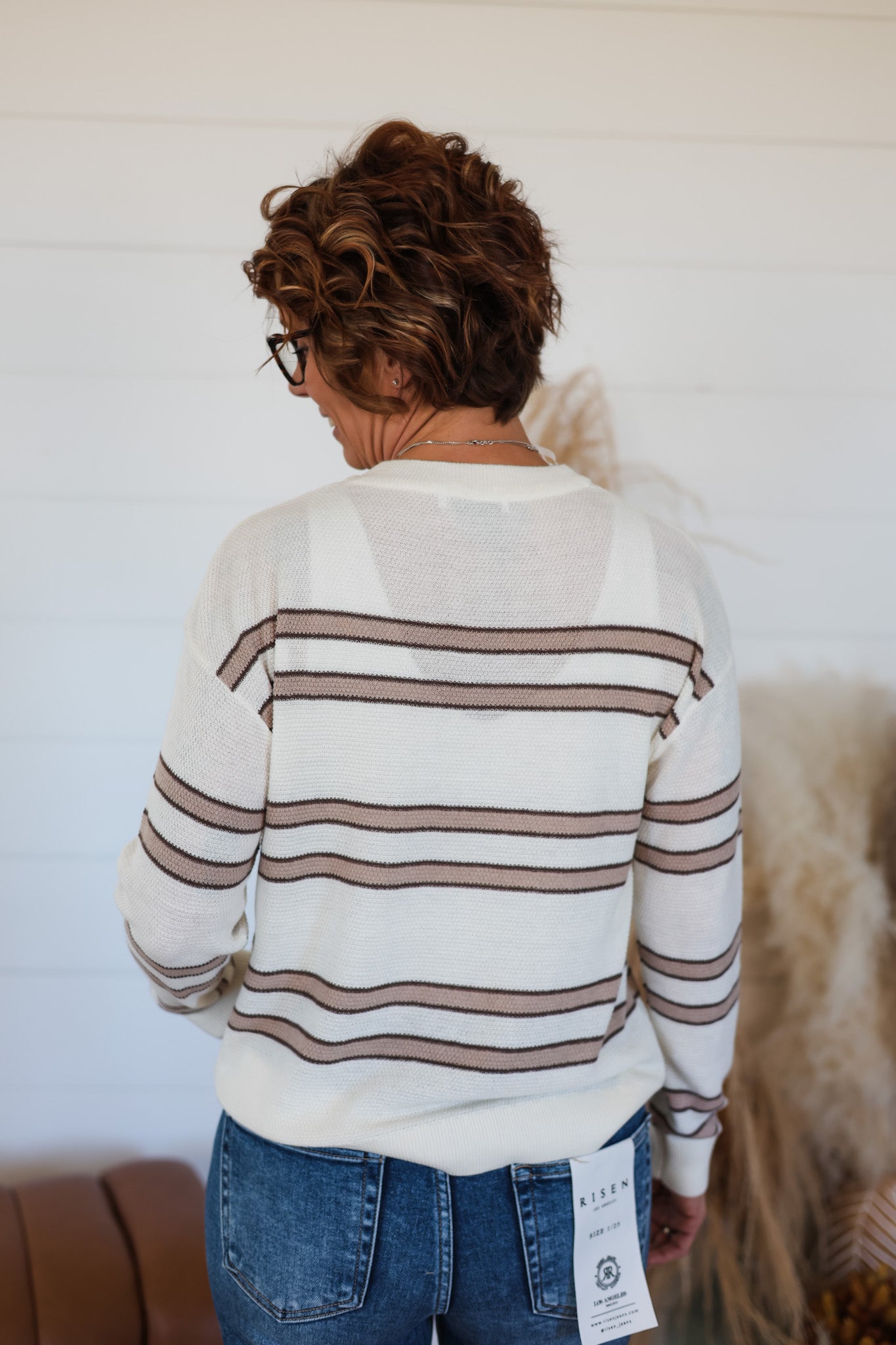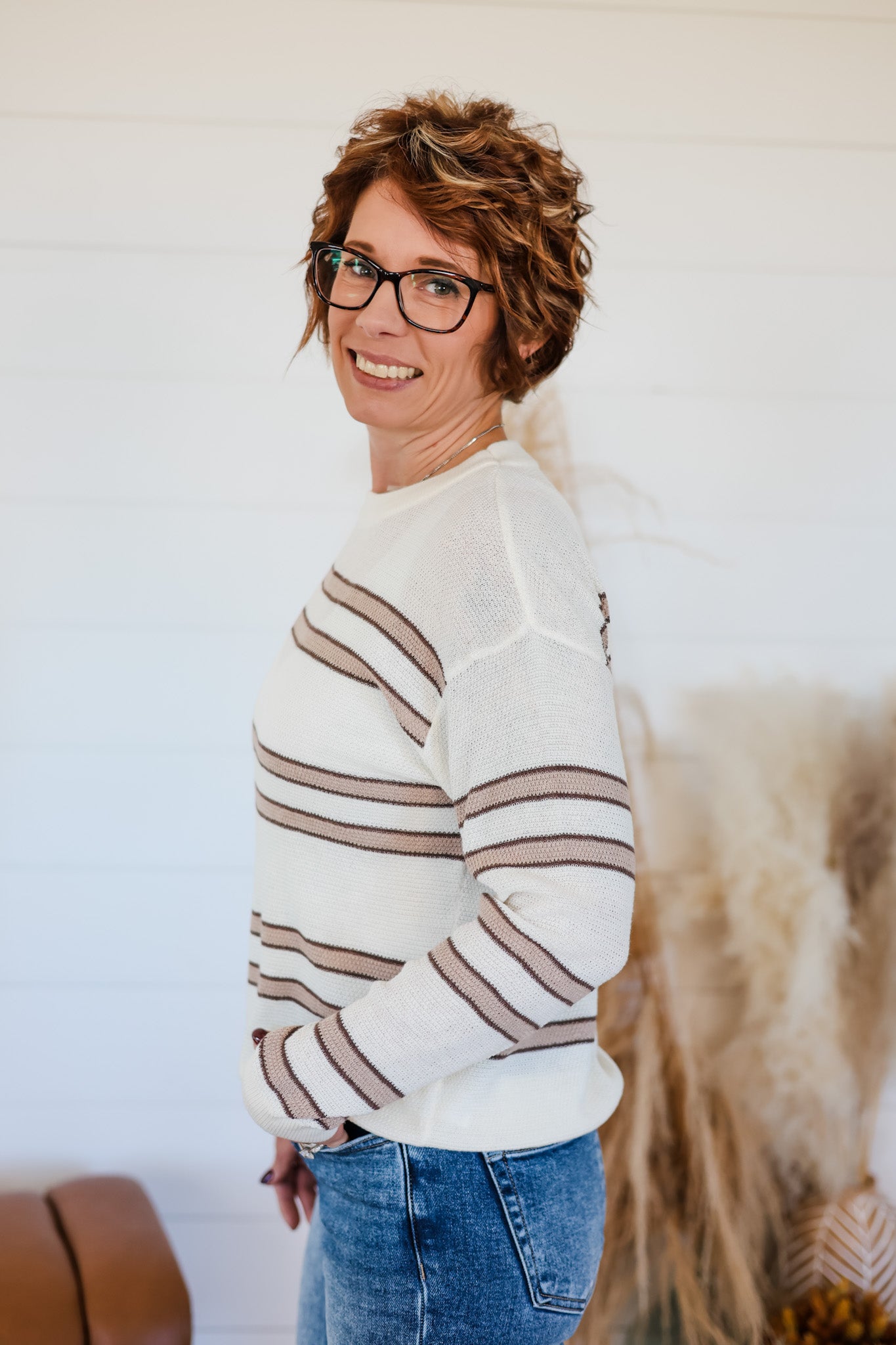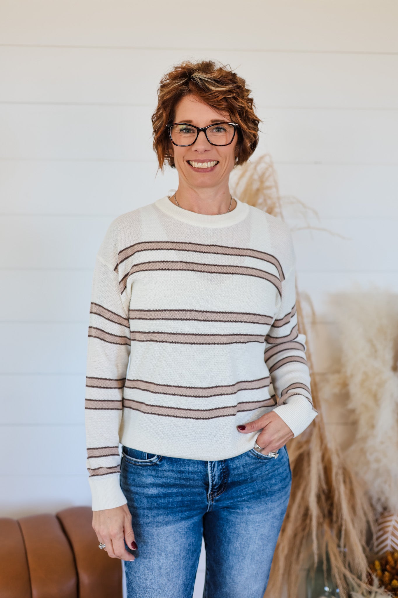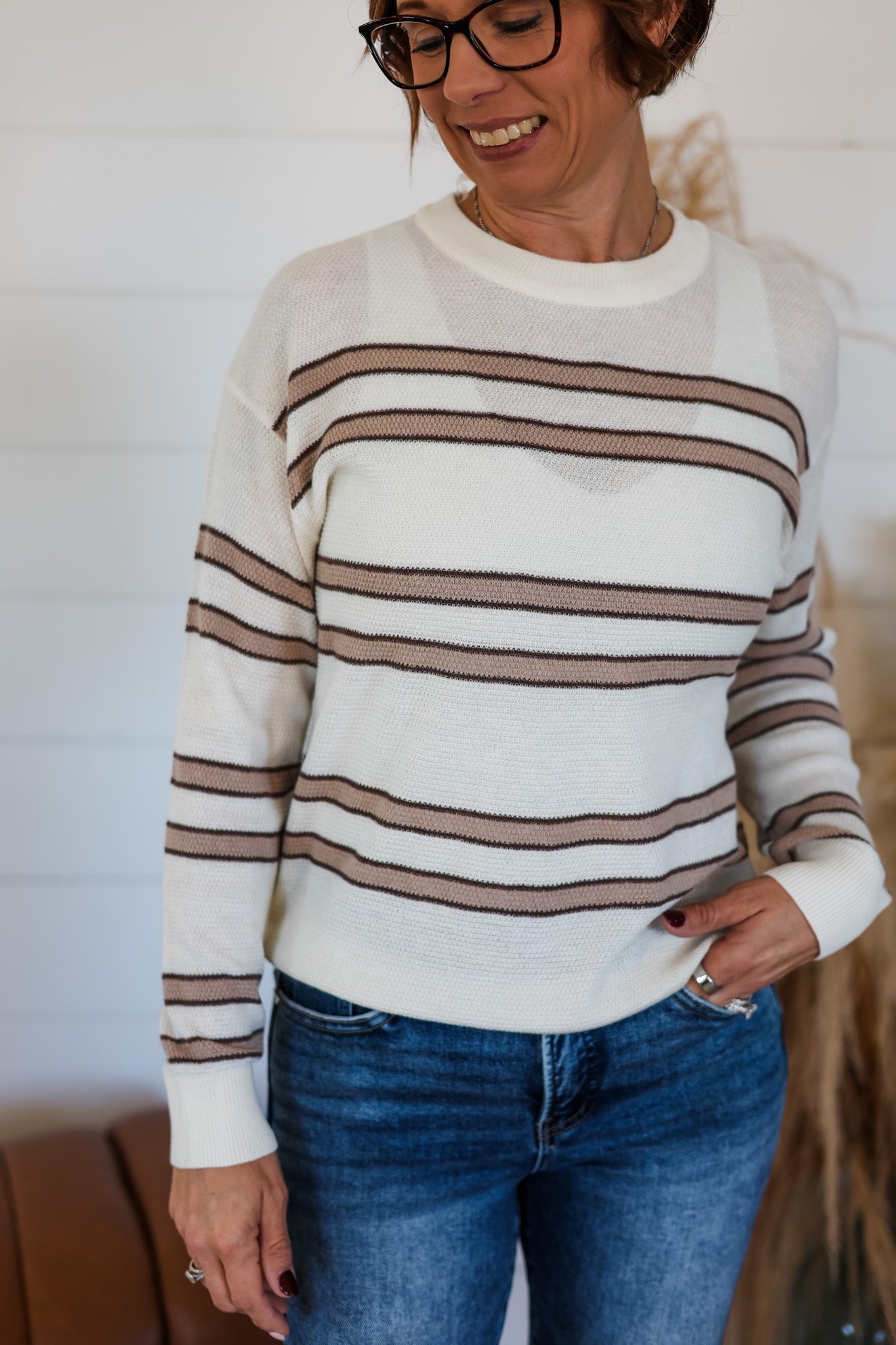 Layer up with effortless style in this lightweight striped crewneck sweater. The long sleeves and relaxed fit make it perfect for transitional weather—dress it up with tailored trousers or keep it casual with your favorite jeans. Soft and breathable, this versatile piece works as hard as you do, whether you're heading to the office or grabbing coffee with friends. A wardrobe essential that never goes out of style.
