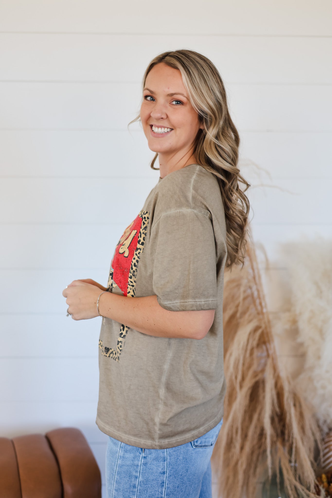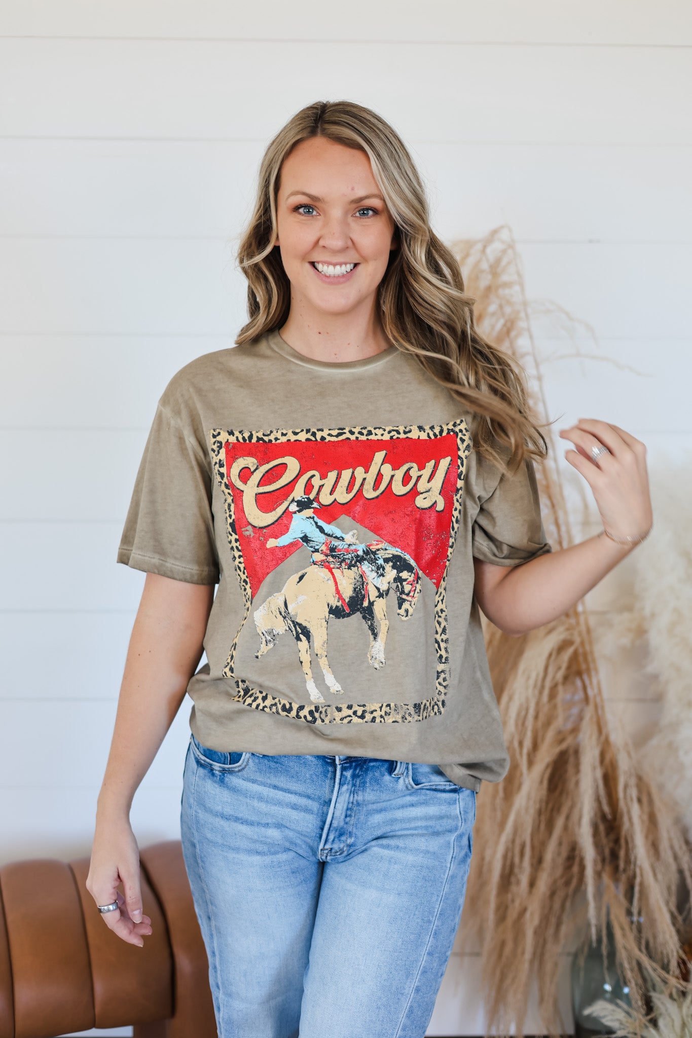 Saddle up for style with this Western Leopard Cowboy Top—a playful twist on classic western vibes. Featuring a bold leopard print that channels cowboy cool, this oversized lightweight tee is perfect for laid-back days and casual adventures. The relaxed fit drapes effortlessly, making it ideal for layering or wearing solo. Soft, breathable fabric keeps you comfortable from sunrise to sunset. Whether you're channeling your inner cowgirl or just love mixing prints with personality, this tee delivers fun, wearable style.