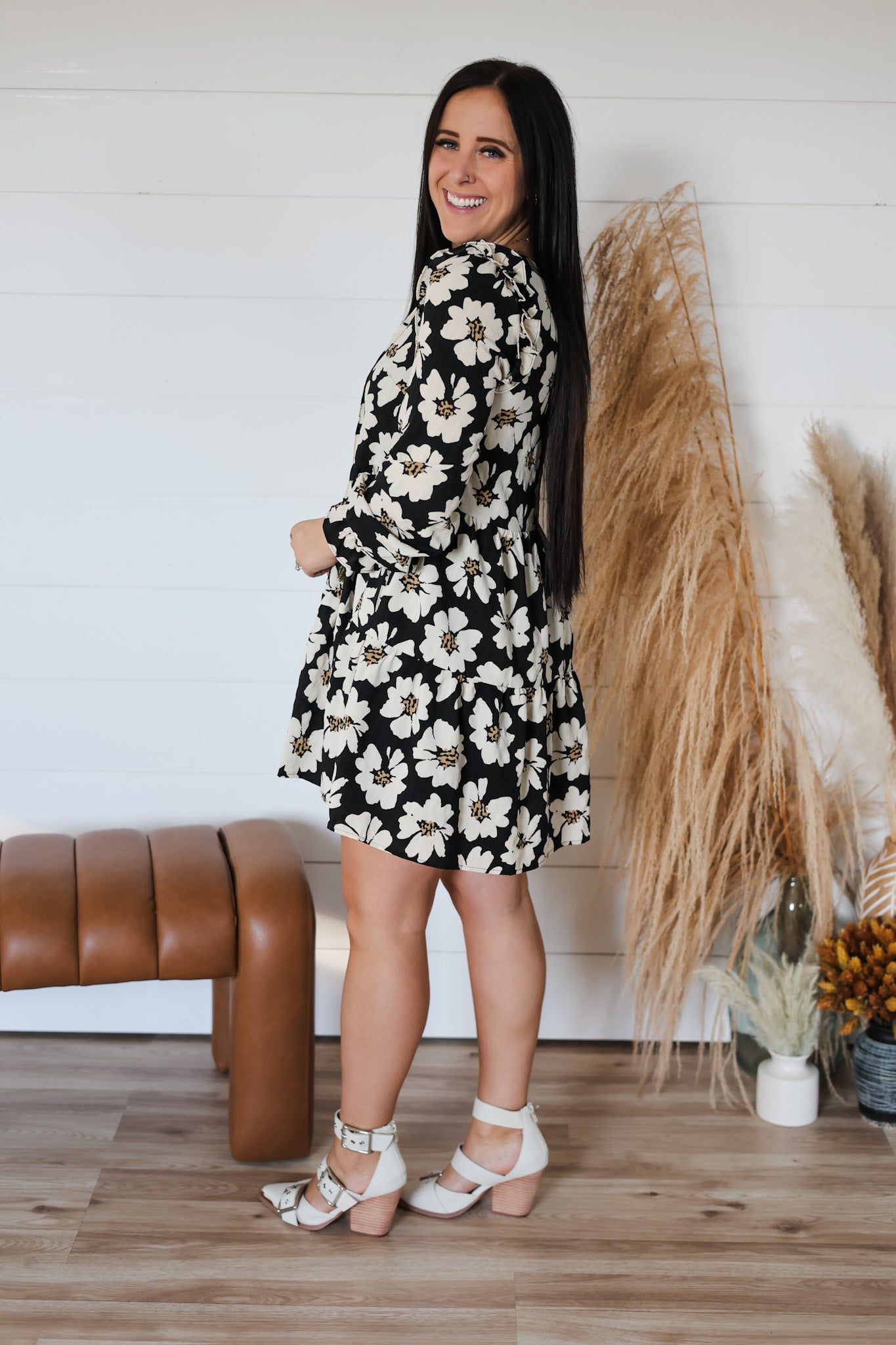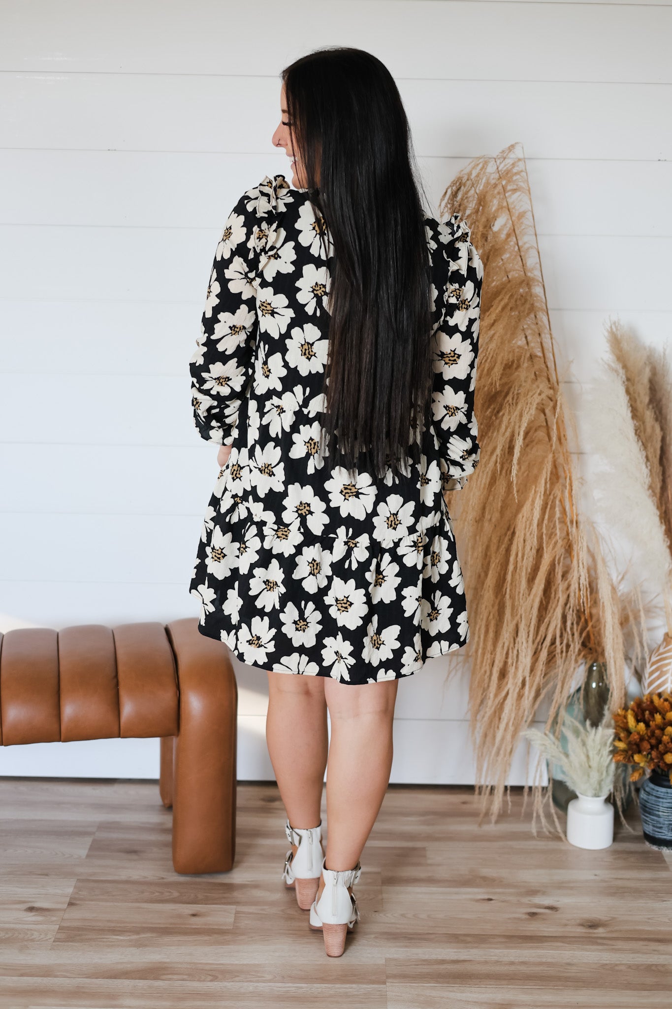Step into whimsy with this floral print tiered dress, featuring a flattering split V-neck and playful ruffle trims along long sleeves. Lightly lined for comfort, its flowing silhouette adds a flirty, carefree vibe perfect for any sunny day or casual outing.