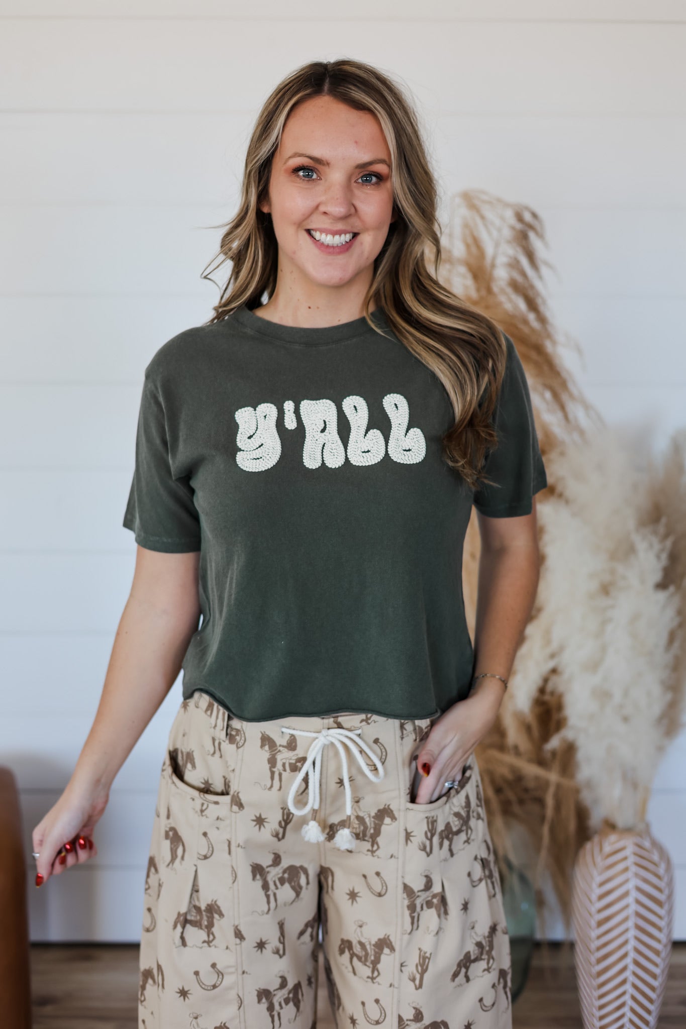 The YALL Top is your new go-to for effortless style. This playful short-sleeve cropped tee features a subtle cut that flatters every frame, with just enough stretch to move with you all day long. Perfect for layering or wearing solo, it's the versatile piece your wardrobe's been waiting for.